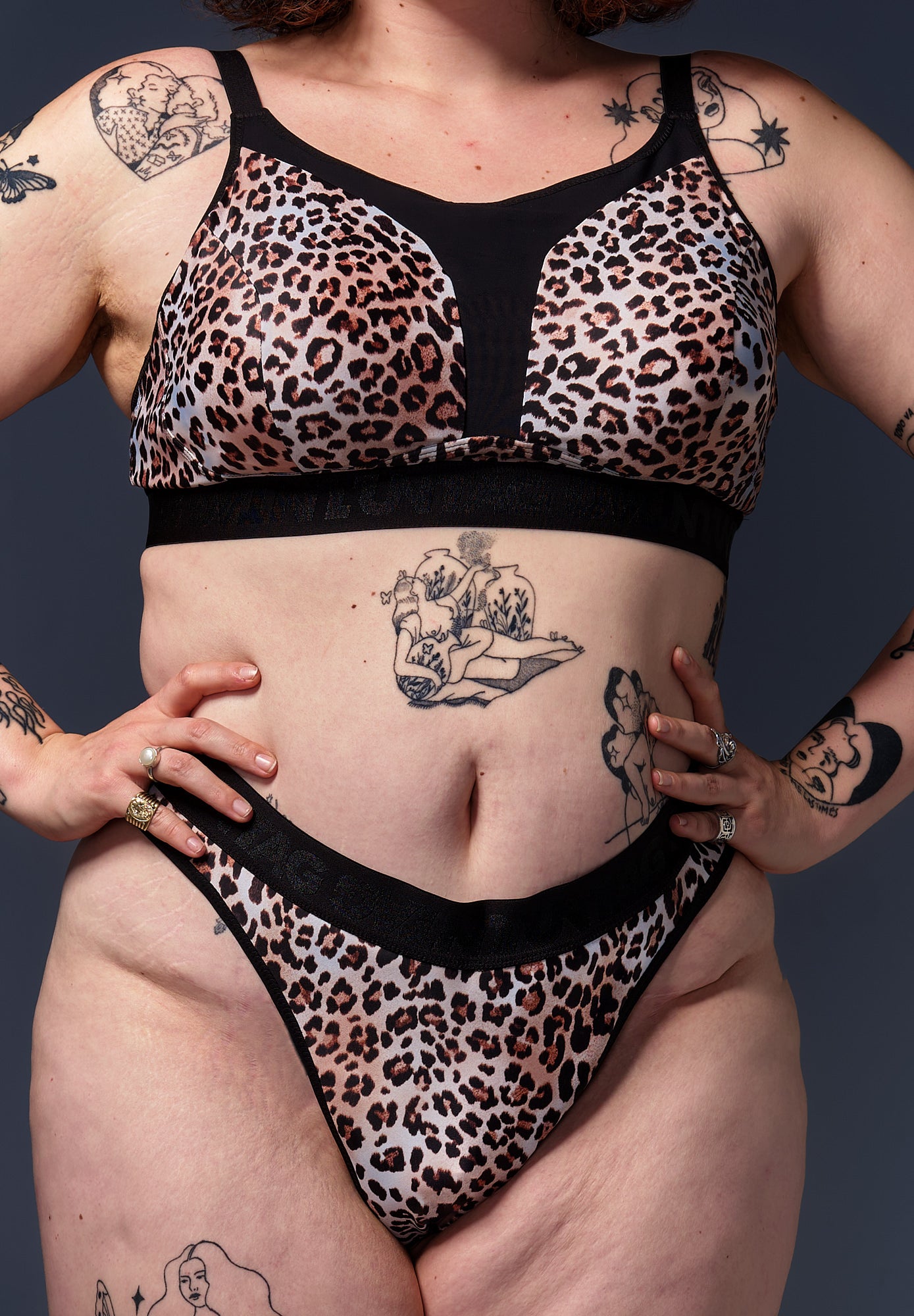 Roar with confidence this summer with our latest drop: the Leopard Collection! Where comfort meets confidence and self-expression reigns supreme. Embrace your wild side and make a statement with the spotted items like the Signature Bralette, the High Waisted Tucking Tanga, or the Athletic Binder. No matter your gender expression, get ready to pounce with our new Leopard printed items!