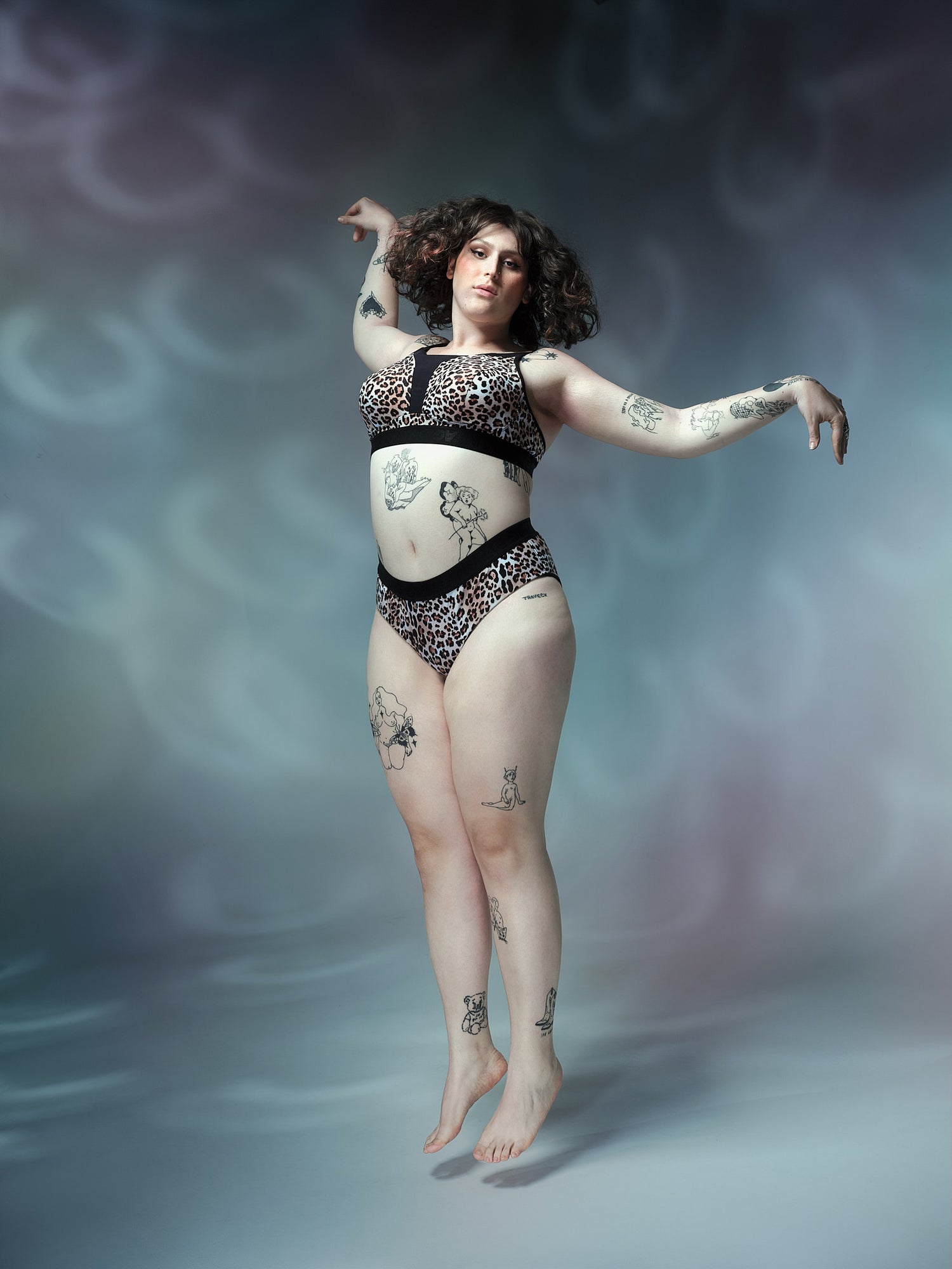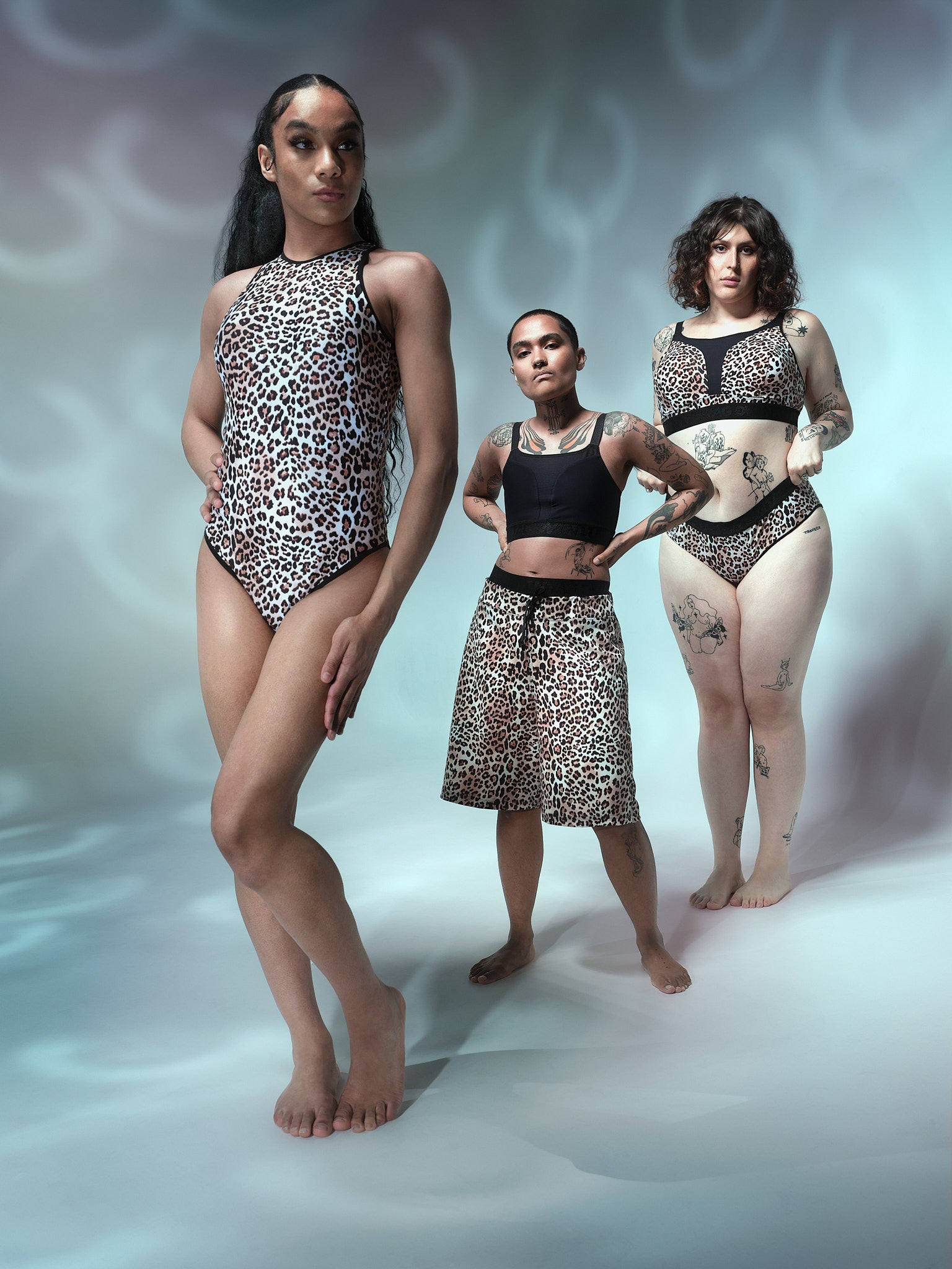 The Leopard Collection consists of six items that were created with inclusivity in mind, serving both trans femme and trans masc communities. At UNTAG, we firmly believe in breaking down barriers between fashion and gender affirmation. Fashion-forward binders and stylish yet functional tucking undies demonstrate that both can coexist seamlessly, empowering individuals to express themselves authentically.
