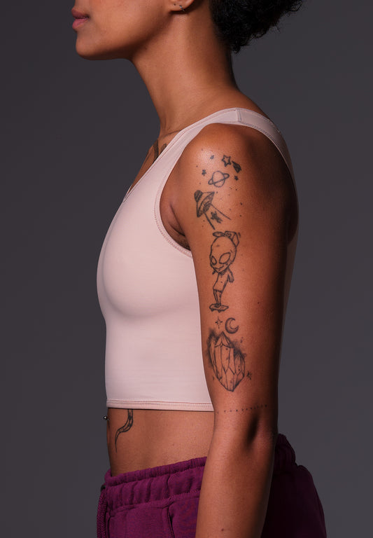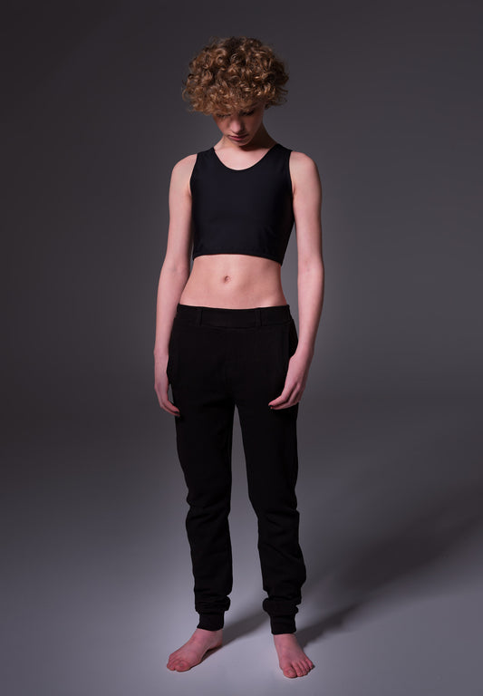 In addition to the regular binders, UNTAG designs binders especially for sports. These sports bra binders are somewhat shorter than the regular binders and have an extra low-cut back. The low-cut back prevents friction and excessive sweating.