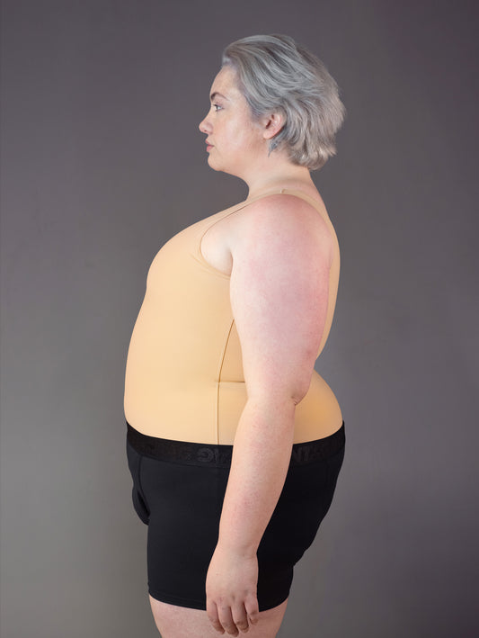 Bras & bratops: una gama de tops mtf, sporttops, sujetadores, bandeaus, tops de natación y singlets que puedes llevar con prótesis mamarias de silicona o prótesis mamarias. Esta ropa es ideal para mujeres transexuales, MtF, no binarias y transfeministas. La ropa Fem es estupenda para reducir la disforia de género de quienes desean presentarse más femeninas.