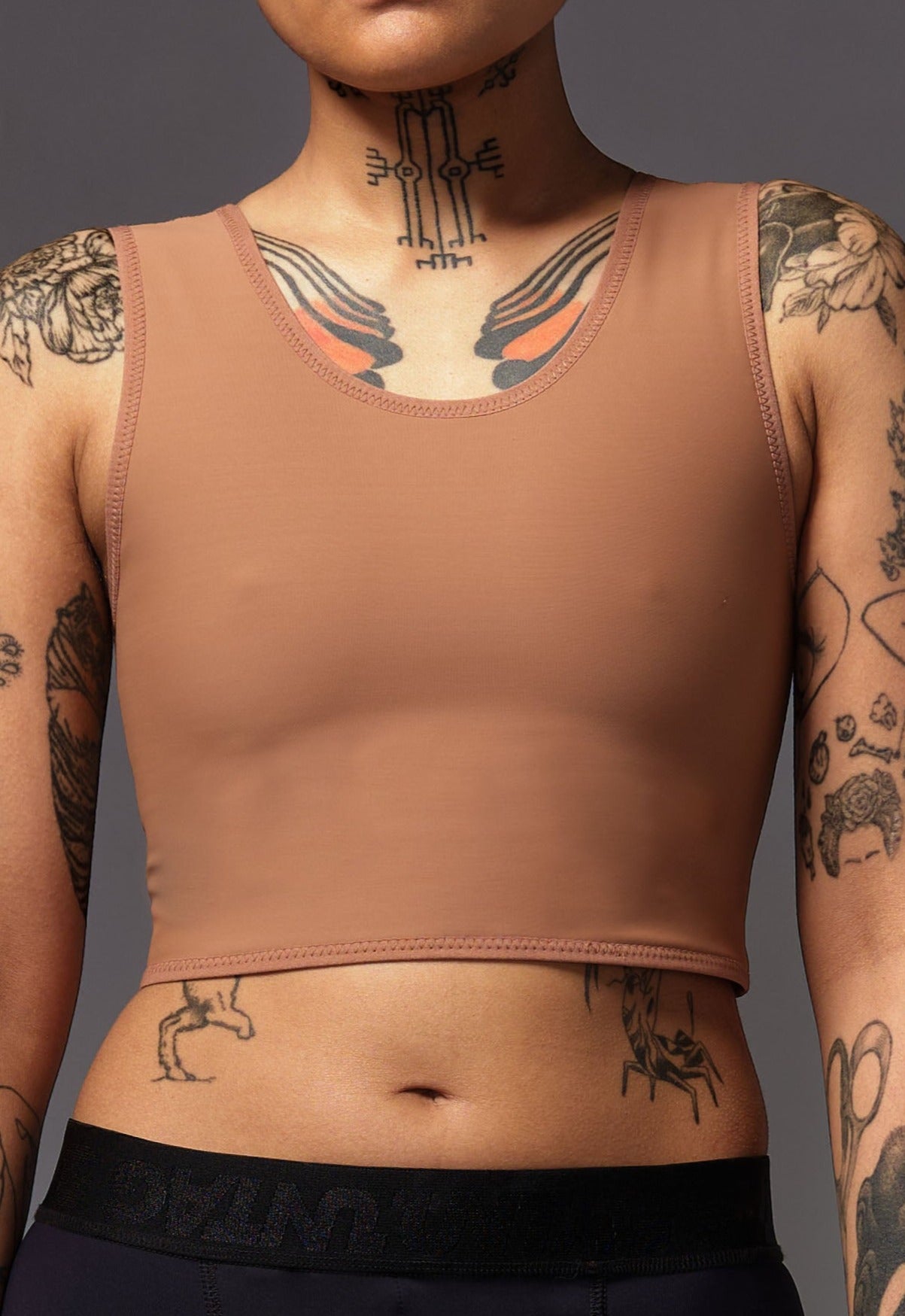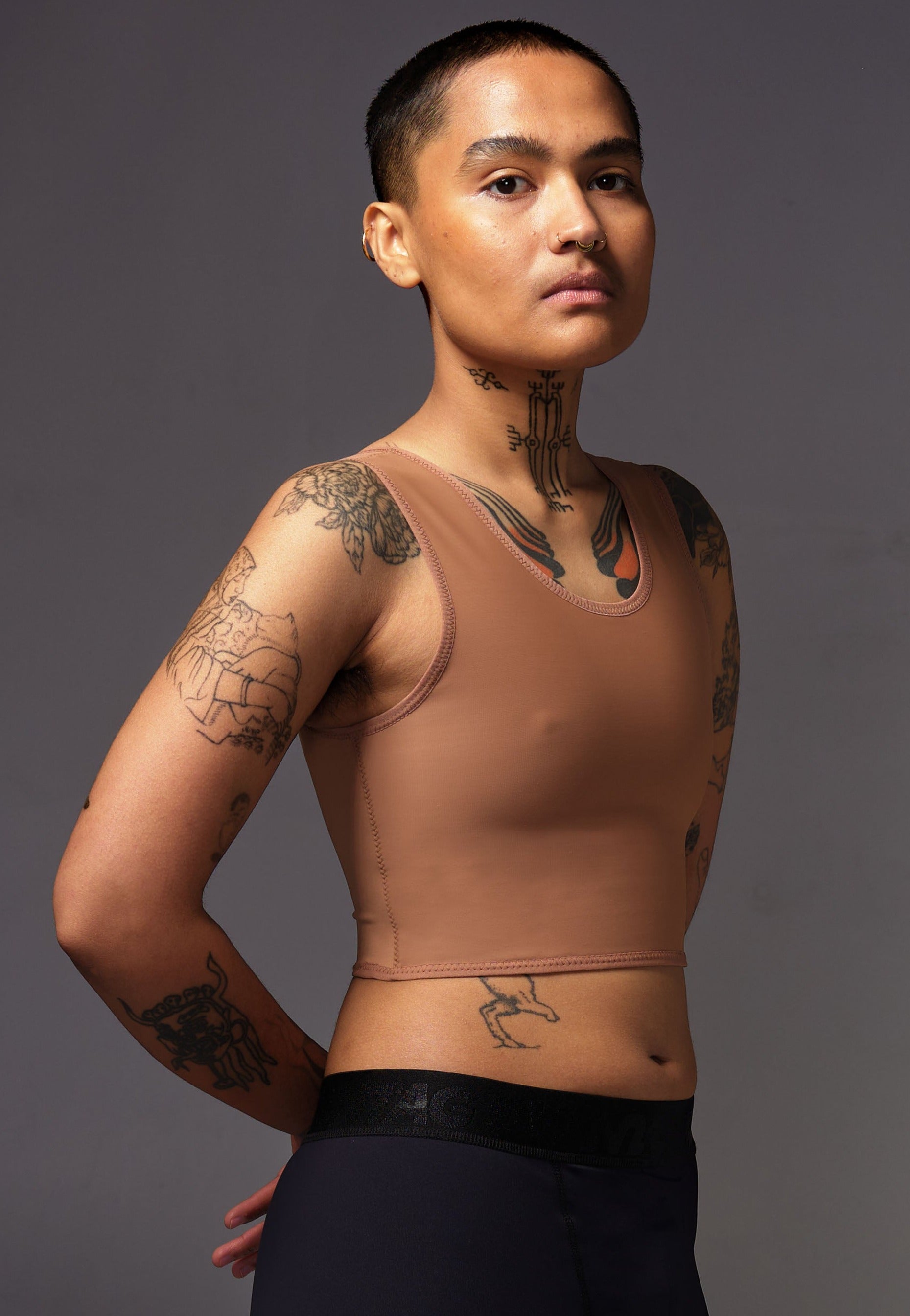 El binder corto ofrece compresión en el pecho. Está confeccionada con un avanzado tejido transpirable y las costuras están ocultas para ofrecer la máxima comodidad. El binder está confeccionada con tejido elástico en 4 direcciones que se mueve con el cuerpo. Esto favorece el movimiento de los pulmones y las costillas y te permite moverte con libertad. Esta binder tiene un corte corto que la hace ideal para el uso diario. Es adecuada para cualquier forma de cuerpo. El binder corto Extra fuerte es ideal para las personas que tienen un pecho más firme o un tórax más grande que necesita una compresión más fuerte.