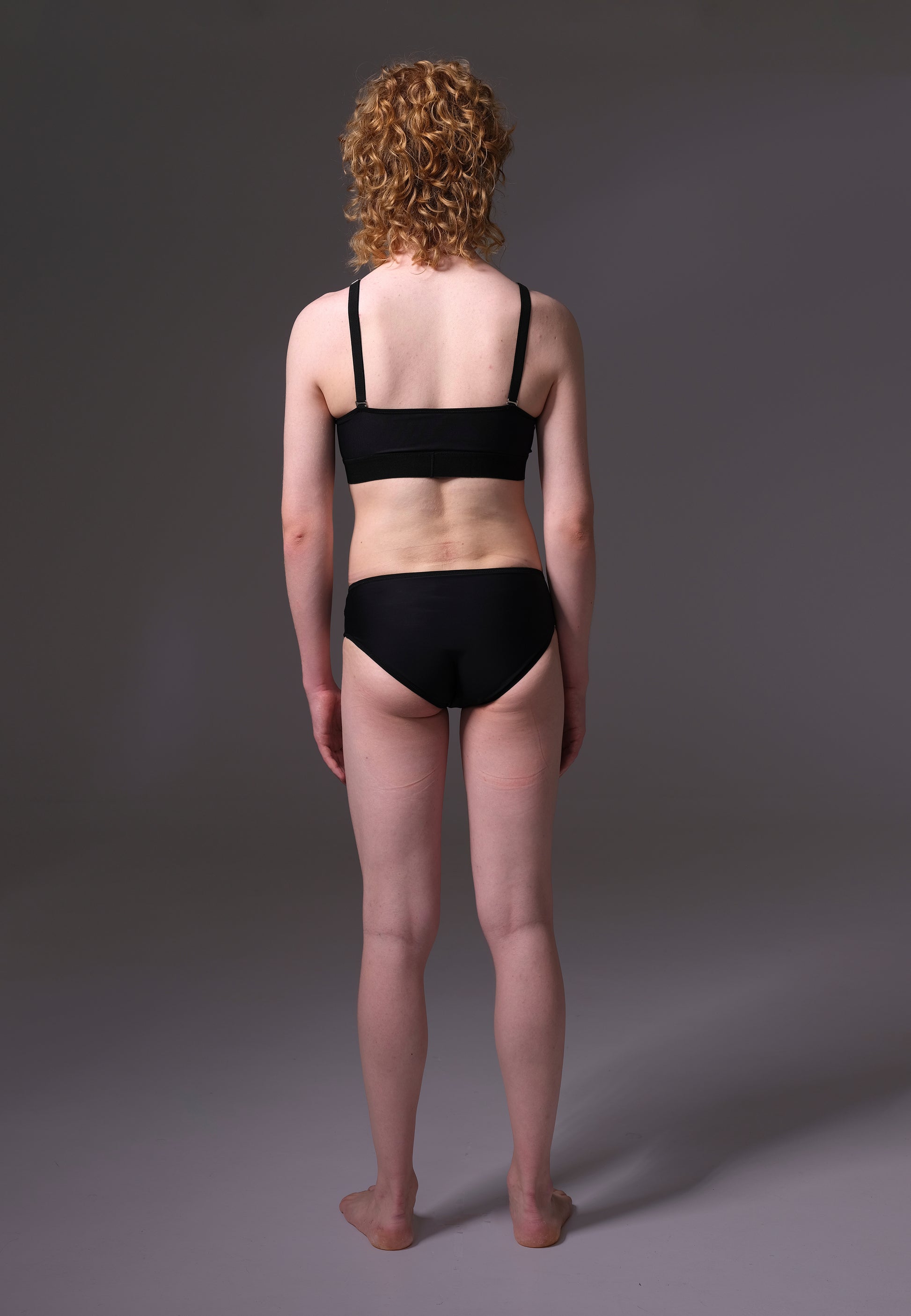A comfortable bra top with extra space for breast prosthetics. Gives you a feminine feeling for everyday wear and can be used for workouts and swimming.