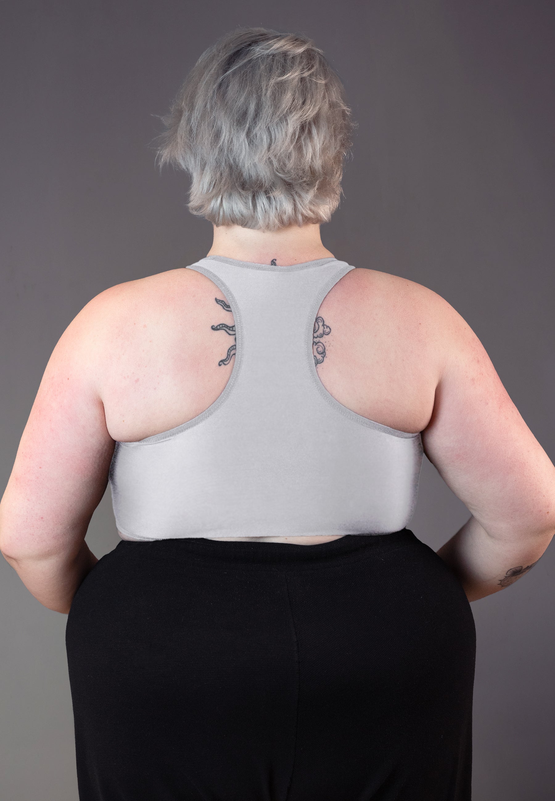 The Tank Swim Binder is designed for a flatter chest appearance. It has a racerback cut on the back which allows the shoulder blades to move freely. This binder can be worn for any kind of swimming activity. The compression fabric dries quickly and gives coverage in and out of the water. The material is designed to withstand sunshine, salt and chlorine water.