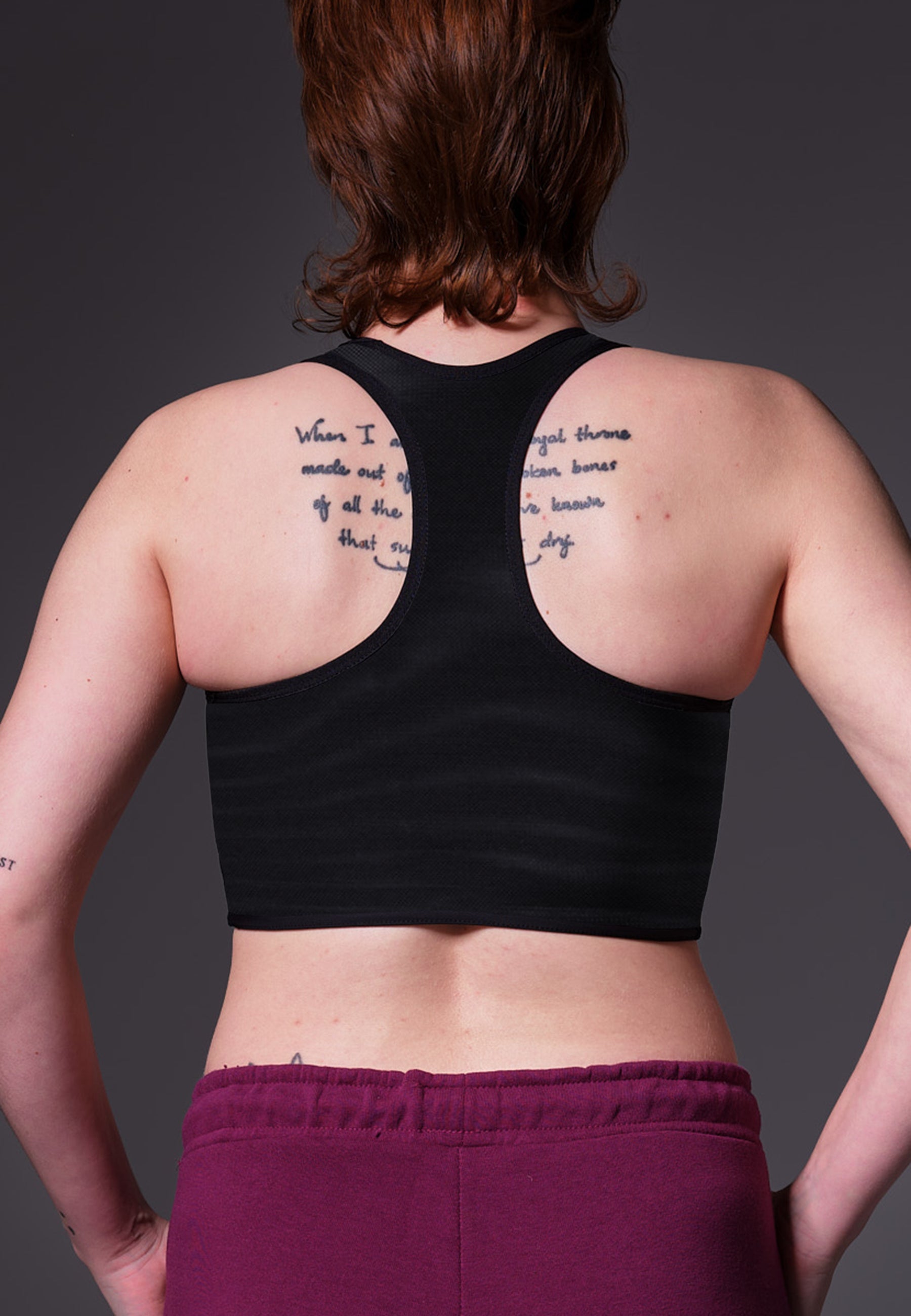 The sporty racerback binder that allows free movement of the shoulders, perfect for swimming whilst giving you safe and firm compression of the chest.